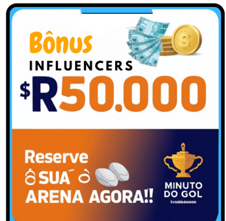 Sua influência + Minuto do Gol + R$50 mil = Sucesso Garantido! Não deixe esta revolução dos palpites esportivos passar. Seu futuro de sucesso começa agora!"